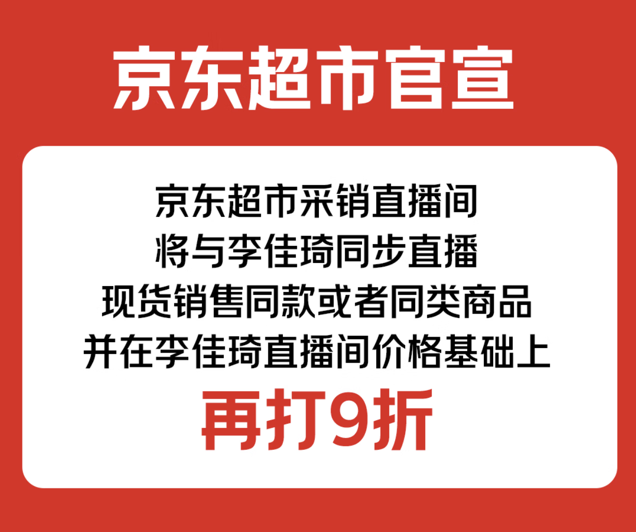 据了解,打开京东APP搜索“京东超市采销”,即可进入京东超市采销直播间,选购9折的李姓主播同款现货商品。